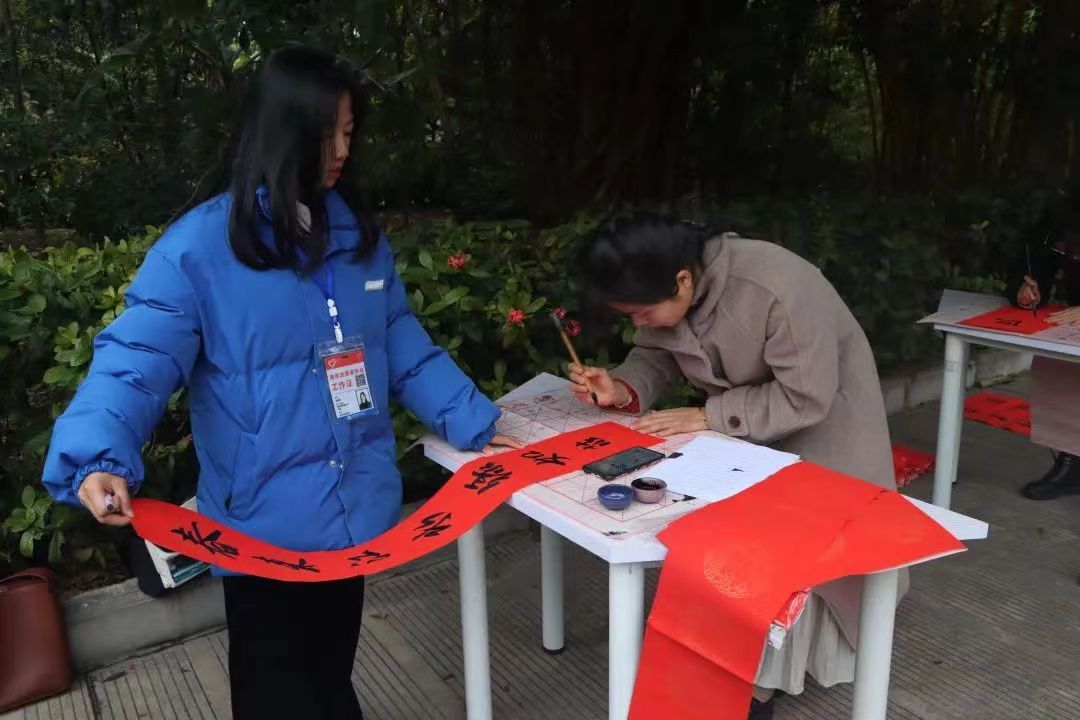 时值新年来临之际,为增强校园热爱书法的师生交流互鉴,弘扬中华优秀传统文化,展现时代气息和传统年味,积极营造欢乐祥和的节日氛围,12月28日、29日校团委新宣部组织"迎新春,送春联"的活动,为在校师生送去新春祝福。