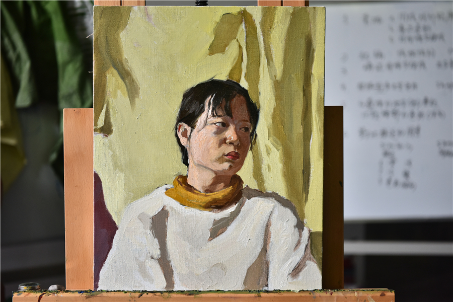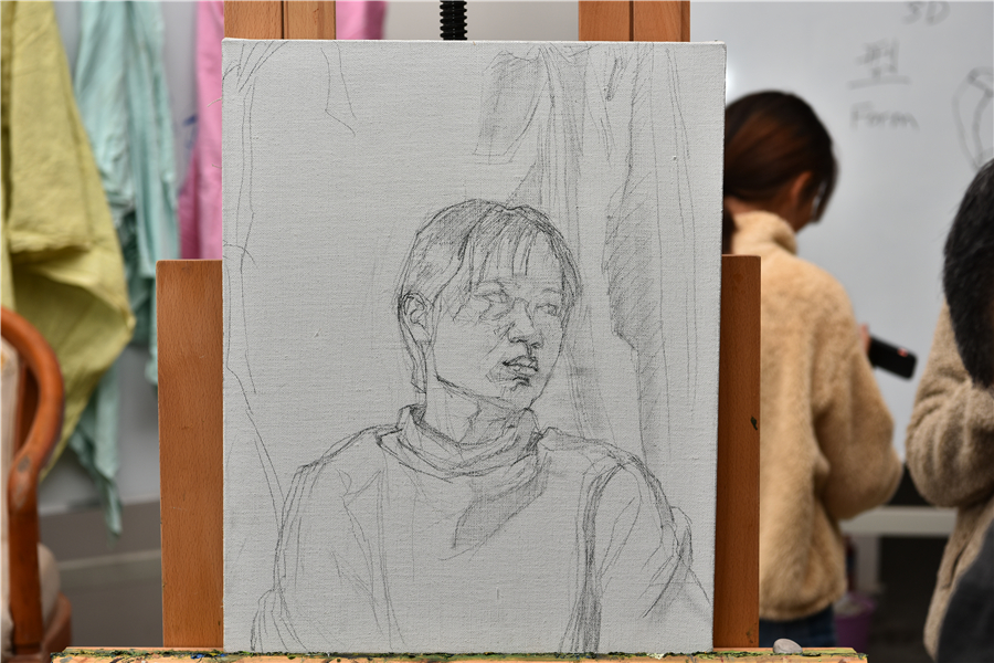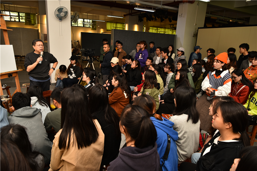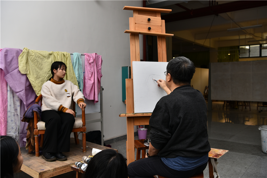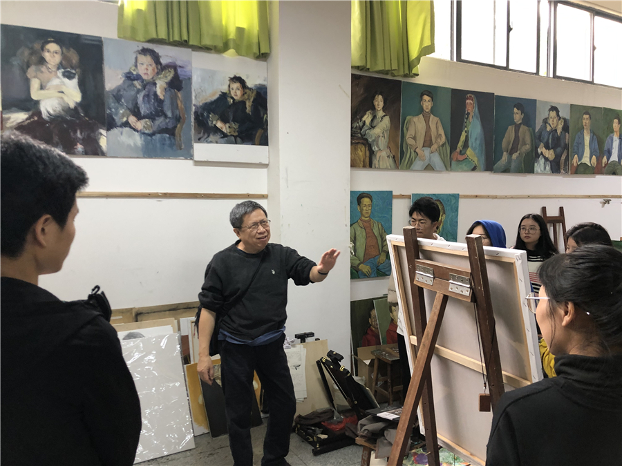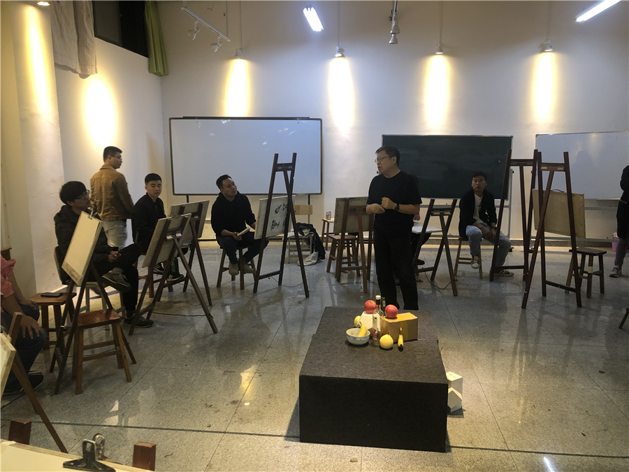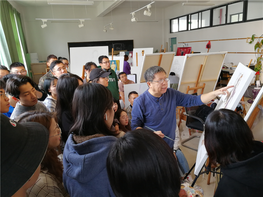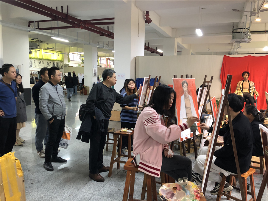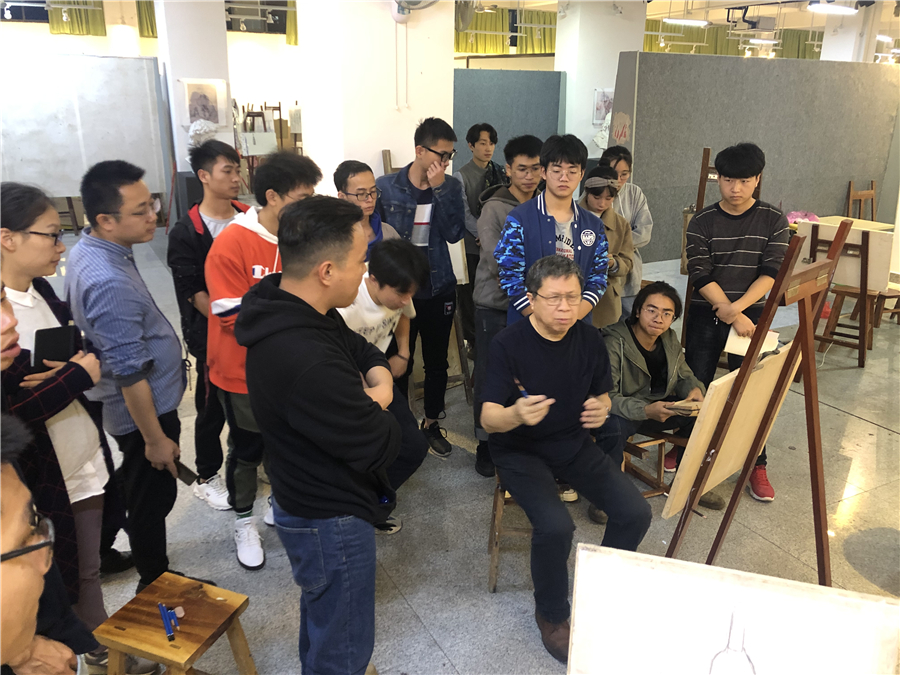 对美术学院的老师和学生代表进行了绘画基础培训,传授自己的教学方法