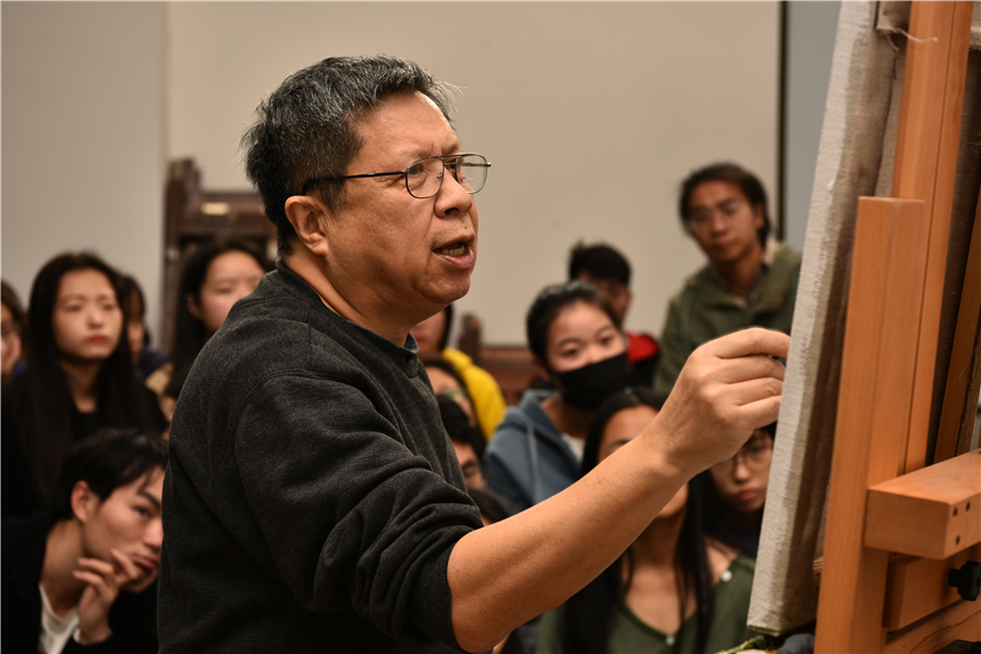 美国加利福尼亚长滩州立大学计宇教授莅临美术学院进行色彩人像写生示范教学指导