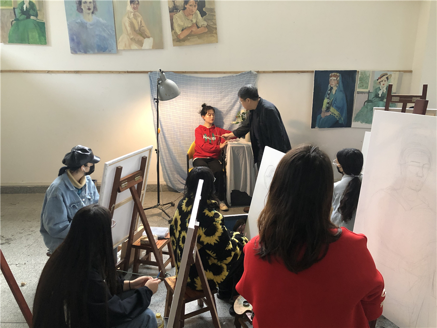 计宇教授在接下来两周的时间里,为绘画17、18级的同学进行现场教学指导。包括绘画17级人体写生课程、绘画18级色彩人物写生(二)课程。