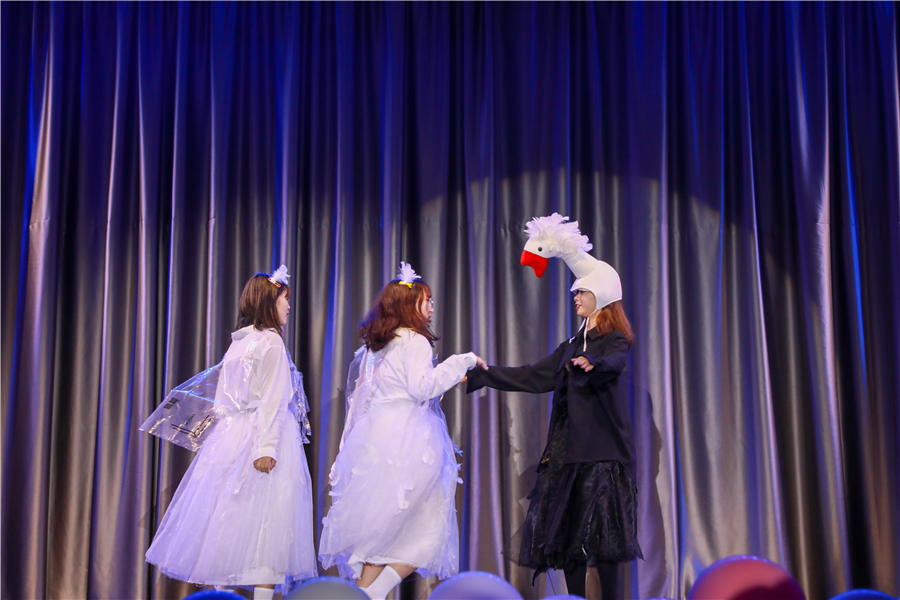 《蜕变》服装的设计灵感来源于《丑小鸭》,白天鹅可爱喜人,黑天鹅高贵冷艳,服装作品通过哑剧的方式展现,黑天鹅开始并不受其他伙伴的欢迎,但她自己并不气馁,甚至为了融入集体而改变自己,但也未赢得他人的喜爱,最终选择了做自己并展现出自己的优点,同时也获得了同伴们的欣赏。作品的主要目的是想要告诉人们,不要盲目追求,找到自己身上独一无二的美。