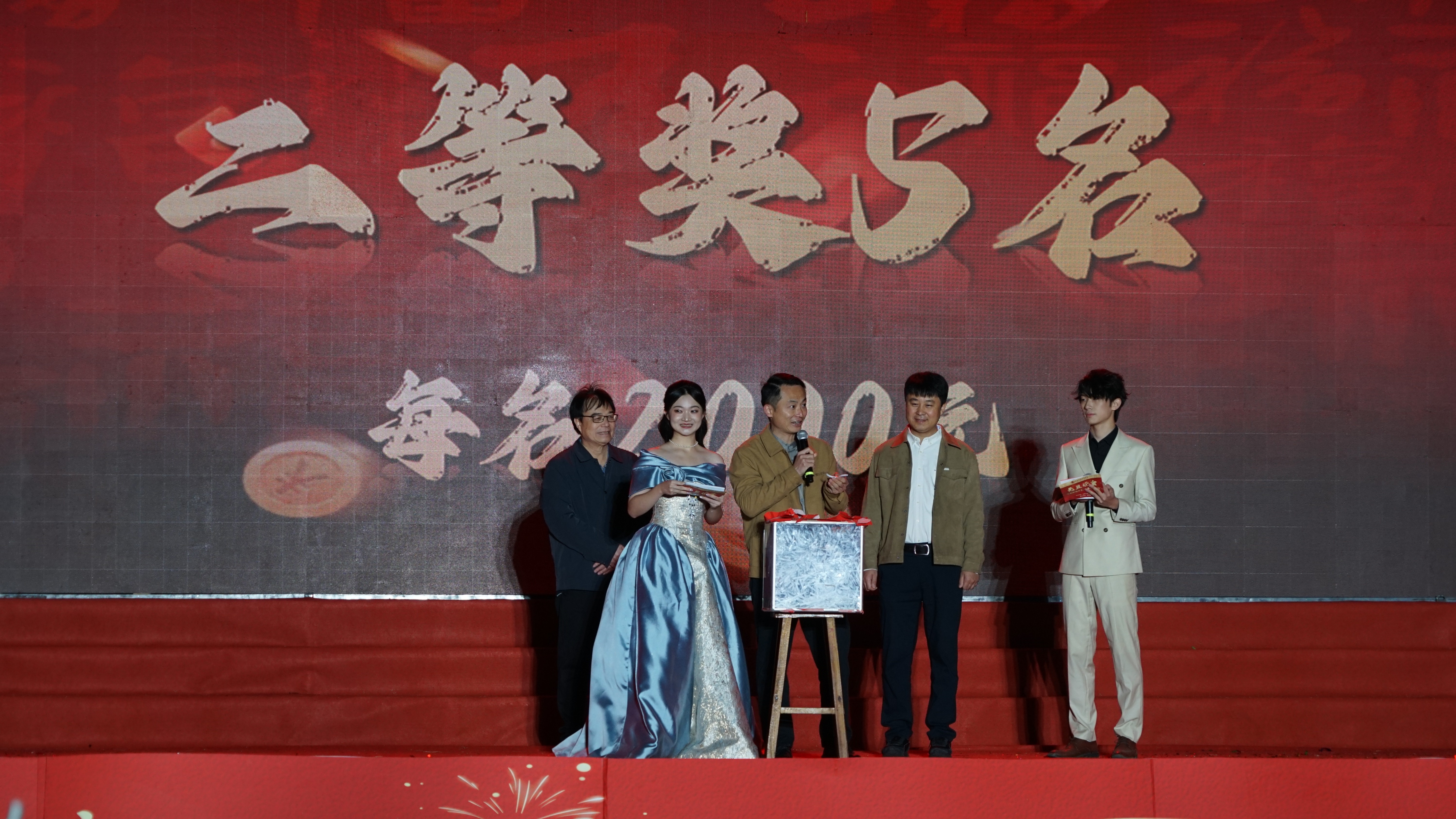 在精彩的歌舞表演后,二等奖的抽取拉开序幕!