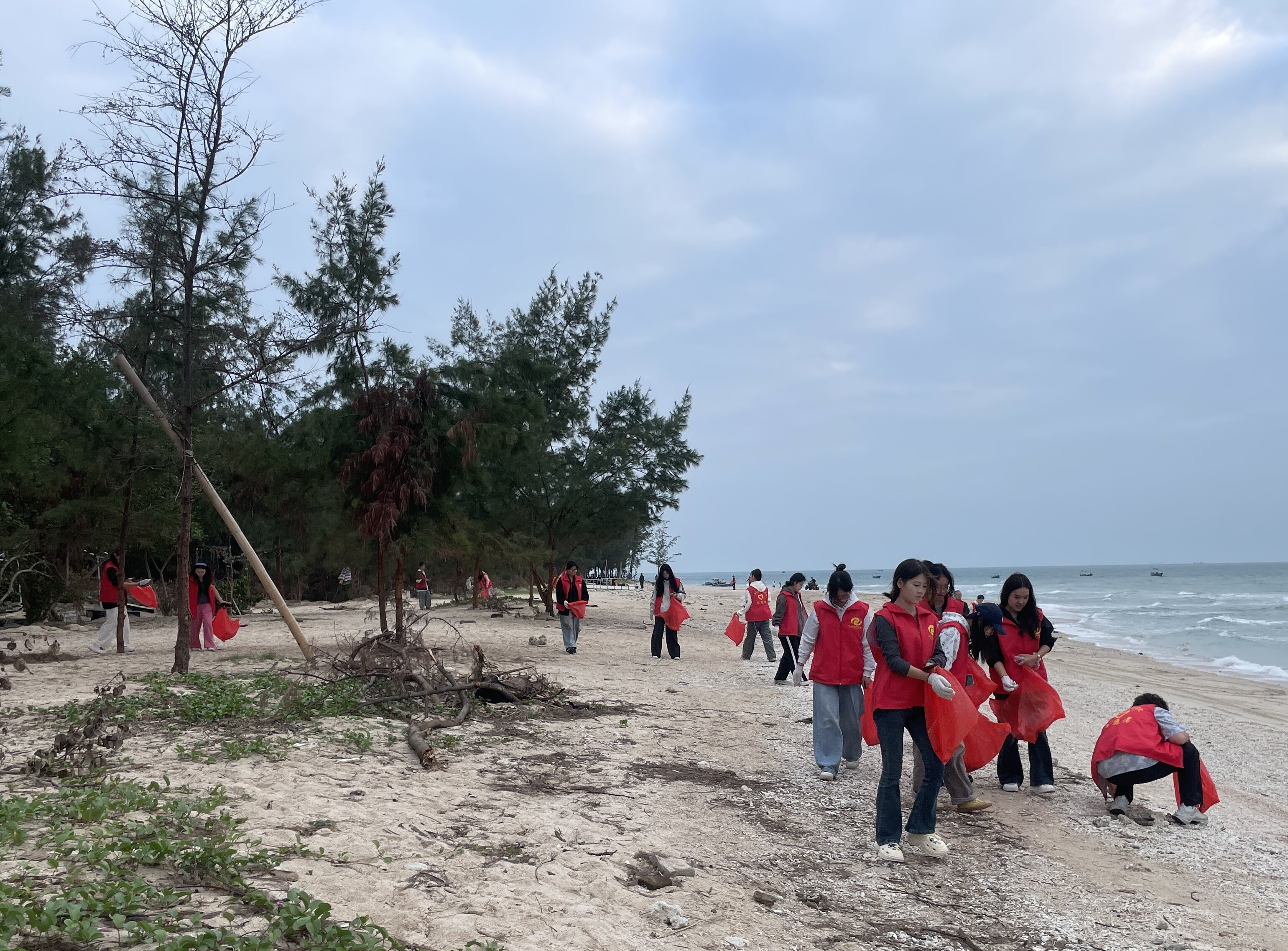 在“为海拂尘”志愿服务活动中,同学们手持清洁工具,化身“海洋卫士”,细致清理散落在沙滩与礁石间的塑料瓶、包装袋、废弃渔网等海洋垃圾。海岸上,忙碌的身影成为海岸线上一道亮丽的风景。经过共同努力,一片片海滩重现洁净,志愿者们也在亲身实践中深刻体会到守护碧海蓝湾的责任与意义。
